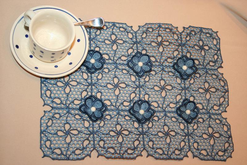 Make this easy to do 3D Flower Dresser Scarf in freestanding lace, applique or both. You can also add as many blocks as you want to determine the length of your dresser scarf.