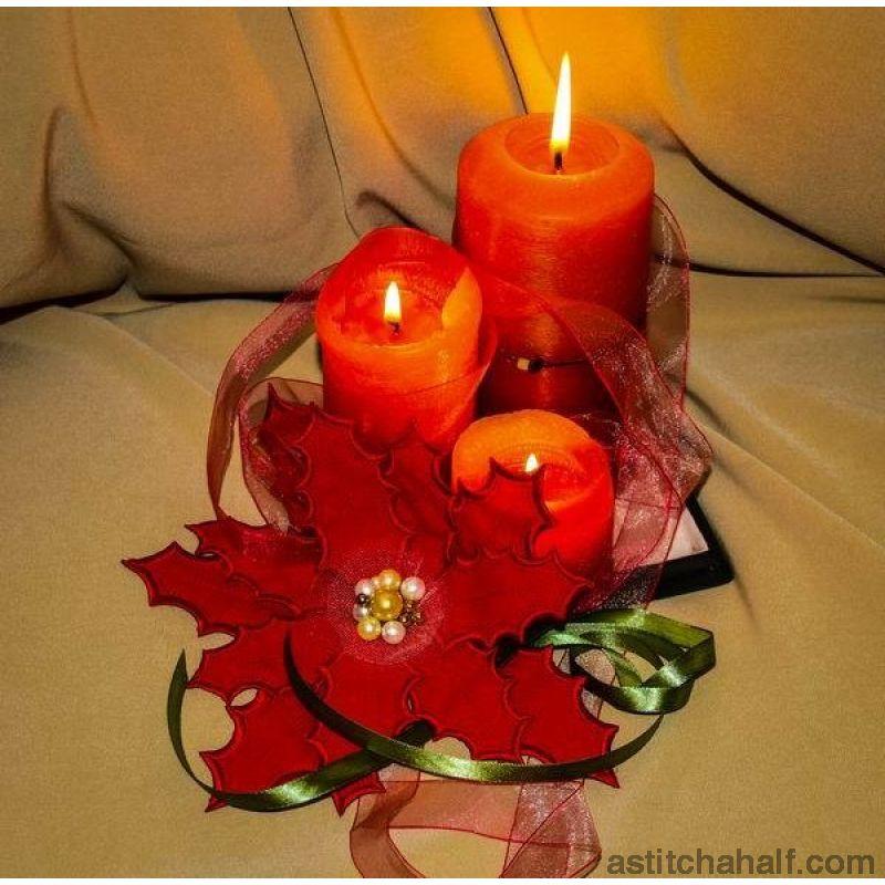 This 3D Poinsettia Flower is a great way to adorn your dinner table, tie back your curtains or embellish a gift. Add green ribbon to enhance the embroidered flower and finish the center of your flower with your choice of beads, pearls or berries.