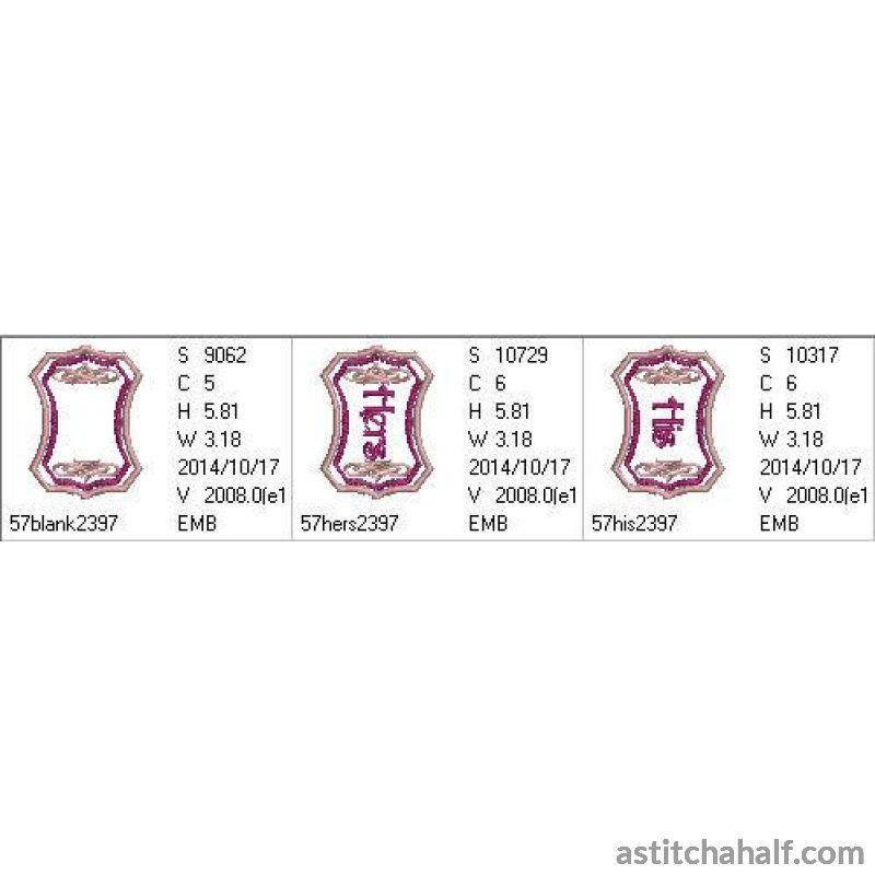 Lavishly and elaborately decorated monograms: His and Hers and a blank where you can customize the monogram for that special occasion.