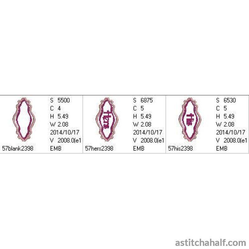 Lavishly and elaborately decorated monograms: His and Hers and a blank where you can customize the monogram for that special occasion.