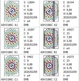 Stitches: A= 19,144 – 11,894 B= 15,927 – 10,287 C= 14,273 – 9402