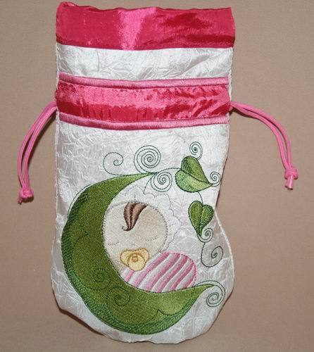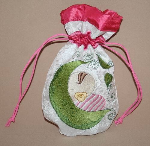 This drawstring Bag is done ALL-IN-THE-HOOP and will make a lovely gift at a Baby Shower.