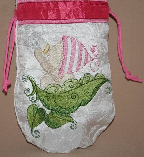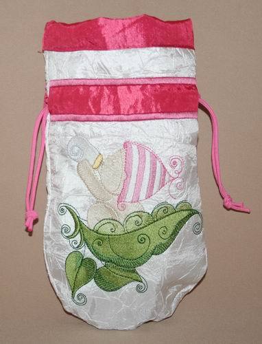 This drawstring Bag is done ALL-IN-THE-HOOP and will make a lovely gift at a Baby Shower.