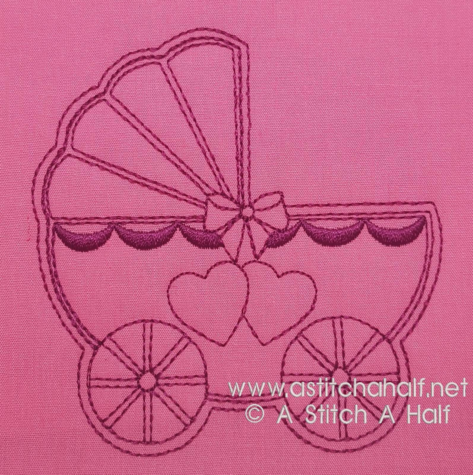 Share this beautiful Baby Carriage with others by making them a set of coasters or even a baby quilt. Why not add it to your babies bib? This Baby Carriage deserves a special place on your project.
