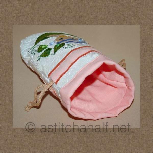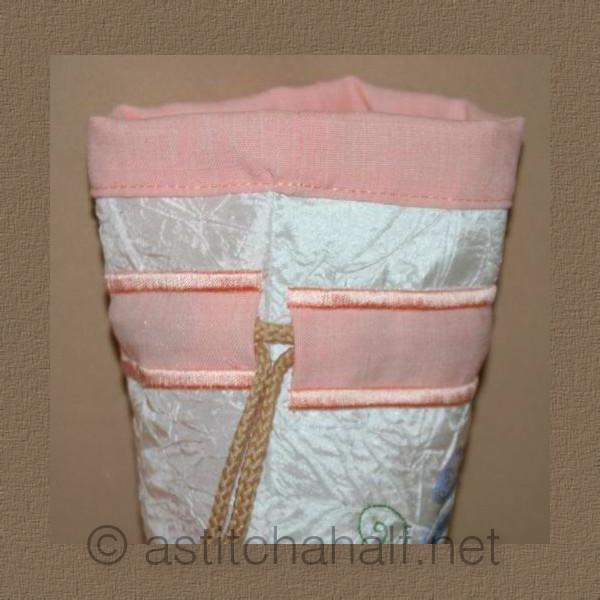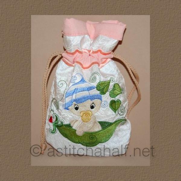 This drawstring Bag is done ALL-IN-THE-HOOP and will make a lovely gift at a Baby Shower.