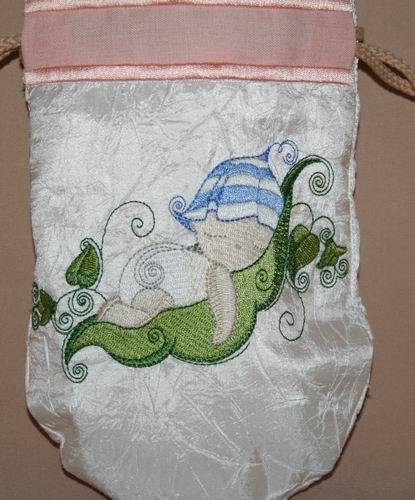 This drawstring Bag is done ALL-IN-THE-HOOP and will make a lovely gift at a Baby Shower.