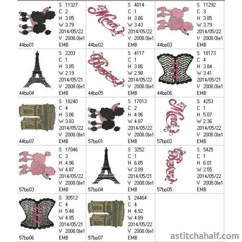 Embroider the Arc de Triomphe, Eiffel Tower, French Poodle, French Couture and more.