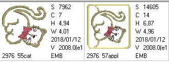 H 4.94" x W 4.01" Stitch Count = 7962 (Applique Kitty)