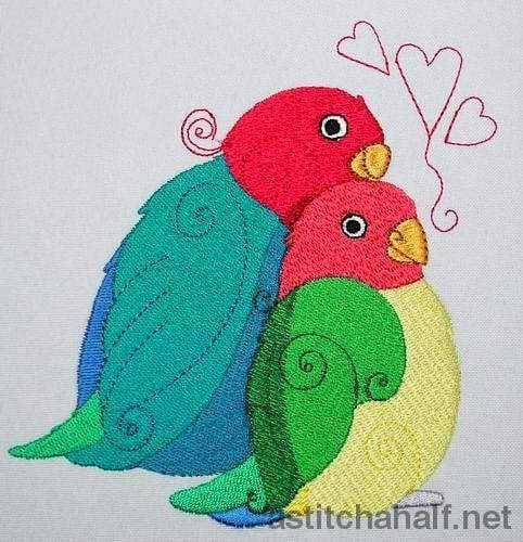 Birds in Love look "in love". Add them to an apron, T-shirt or any garment to give them a new look.