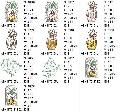 - Designs 3 x 4*4 hoop", Stitch Count 1310 - 5278
