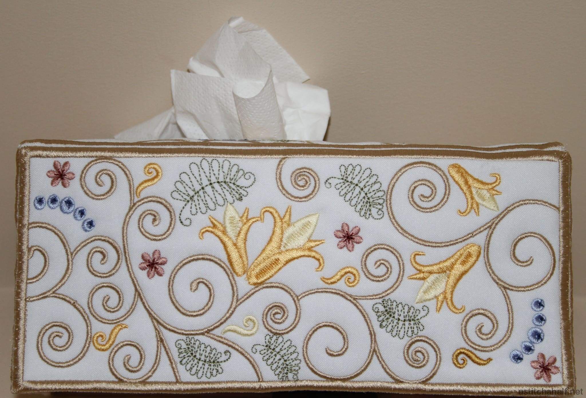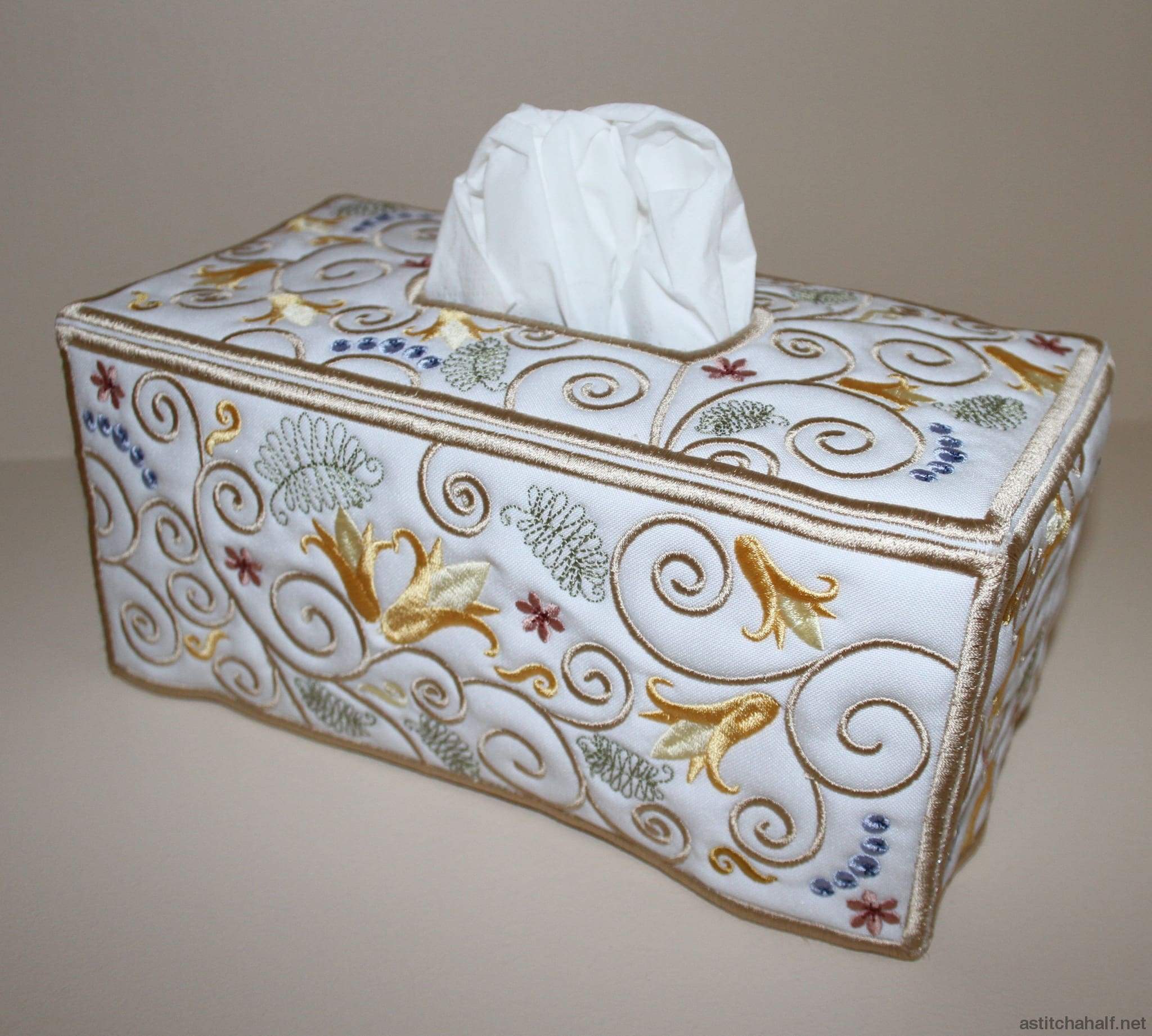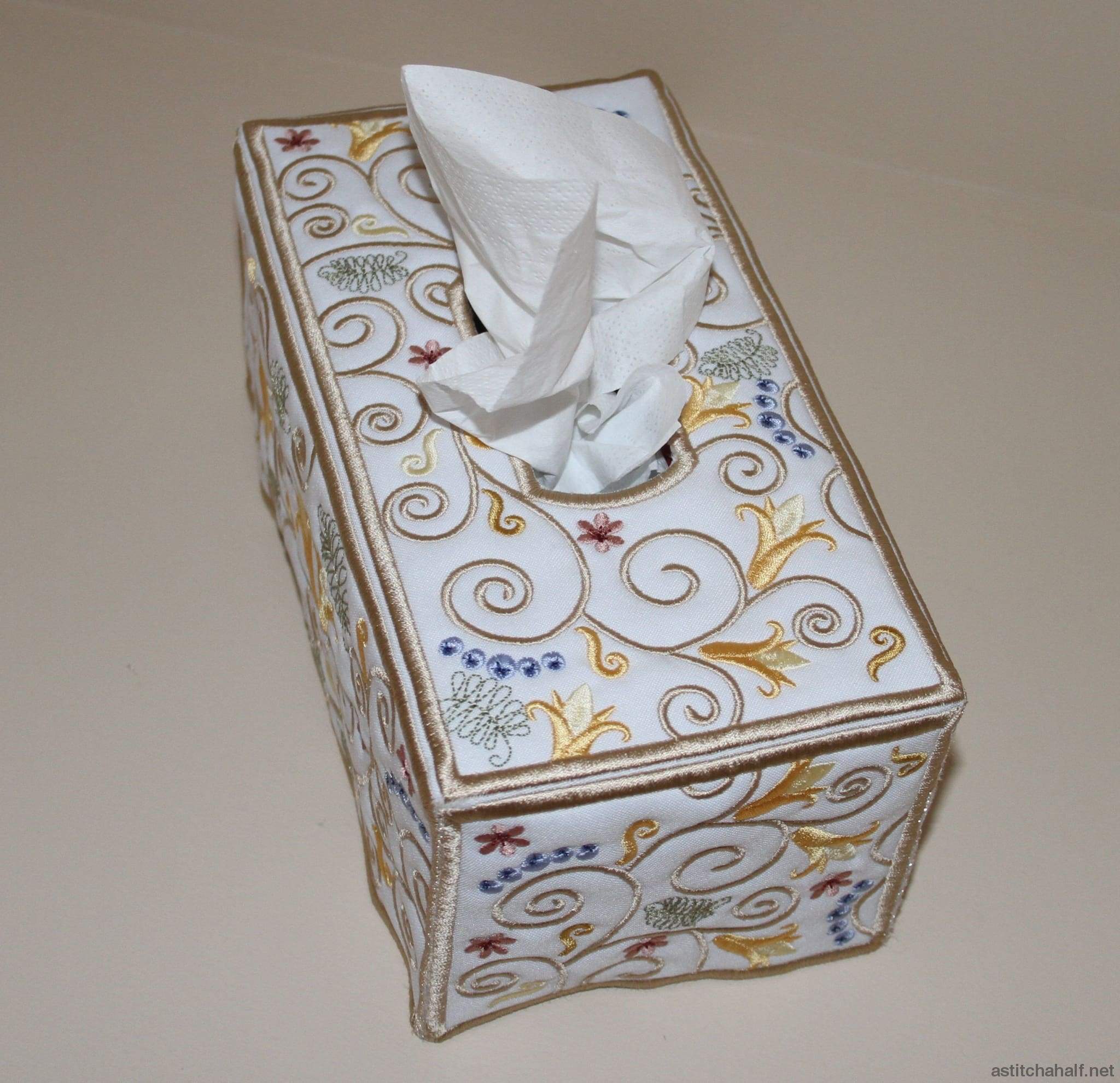 A Tissue Box cover is not only practical, it decorates the room and is a beautiful gift for a friend. Only 5 panels to stitch out and easy to follow instruction included in your instant download