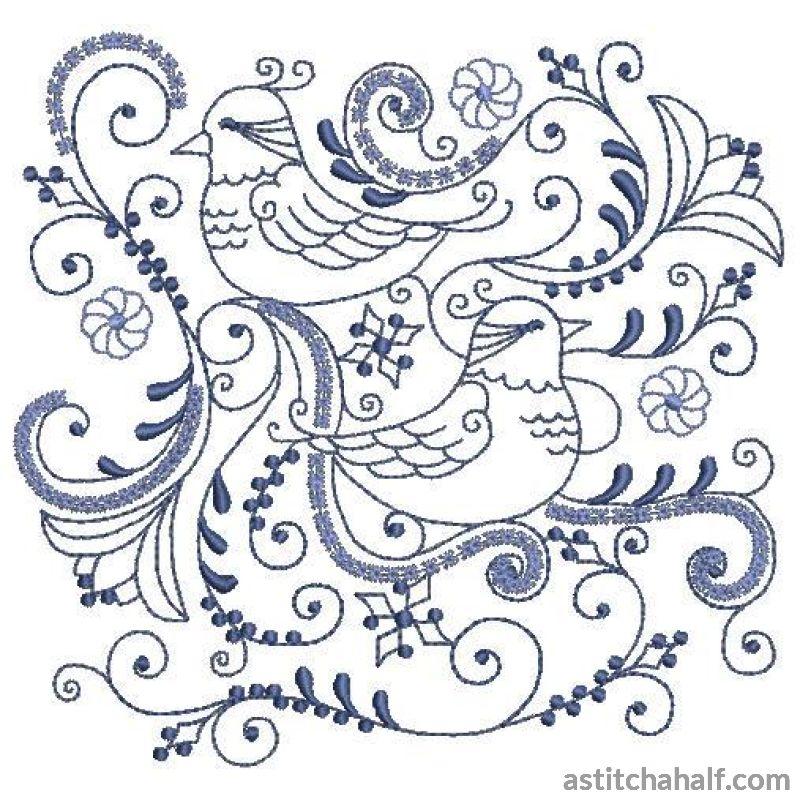 The simple yet elegant Blue Danube Center will look wonderful on pillowcases.