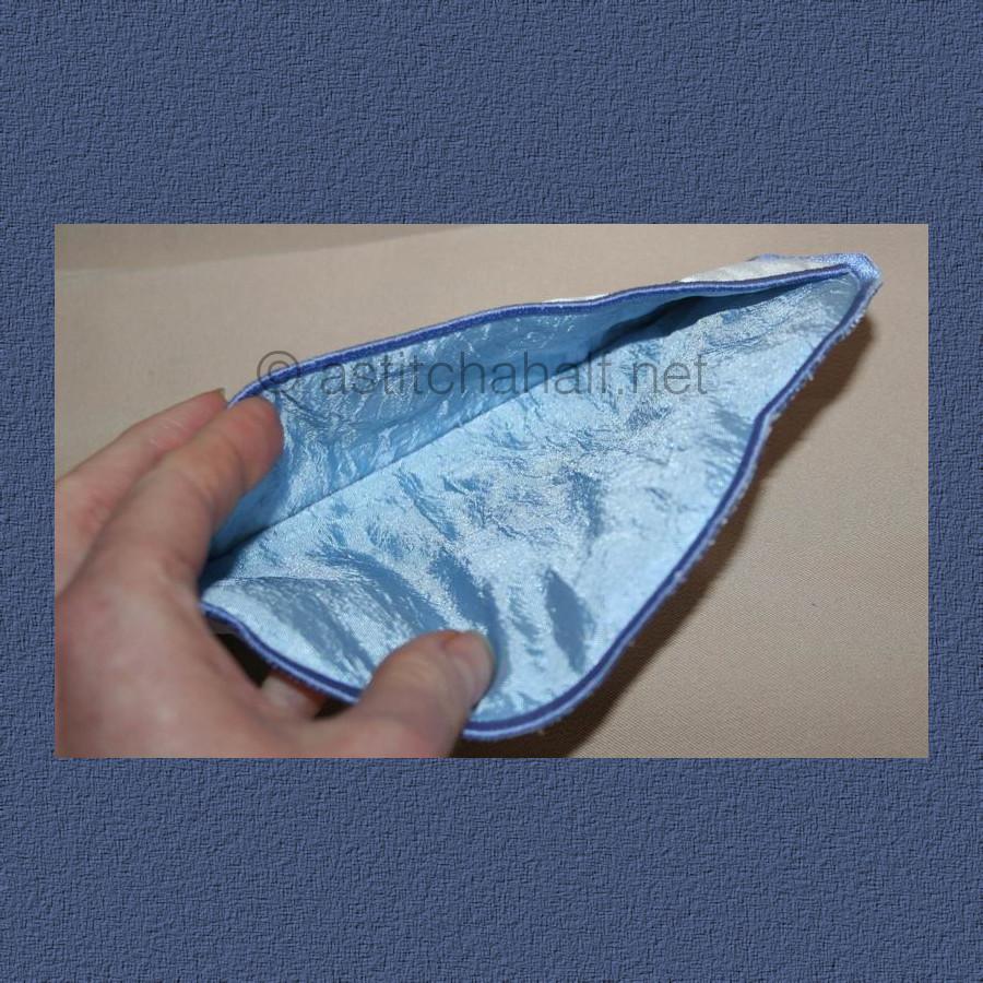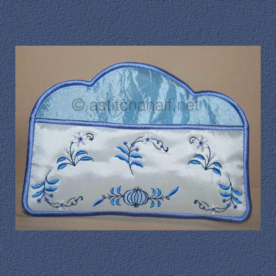 An all in the hoop Blue Onion Cosmetic Bag. You can also use it as a pencil case, purse, eyeglass case etc