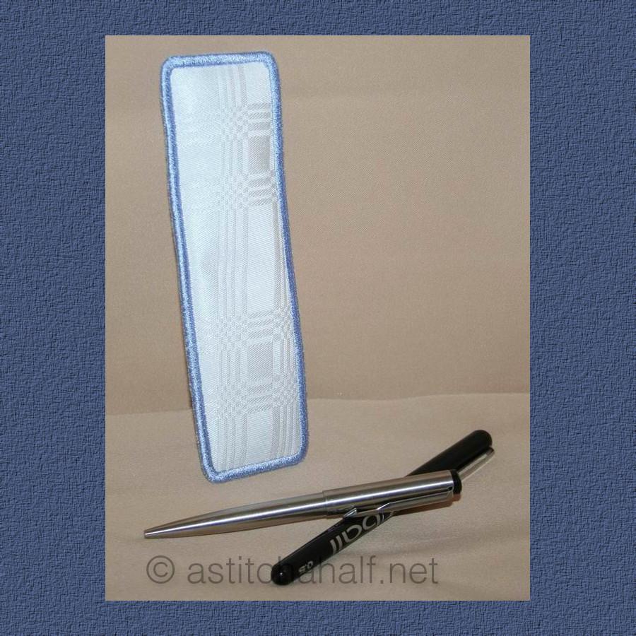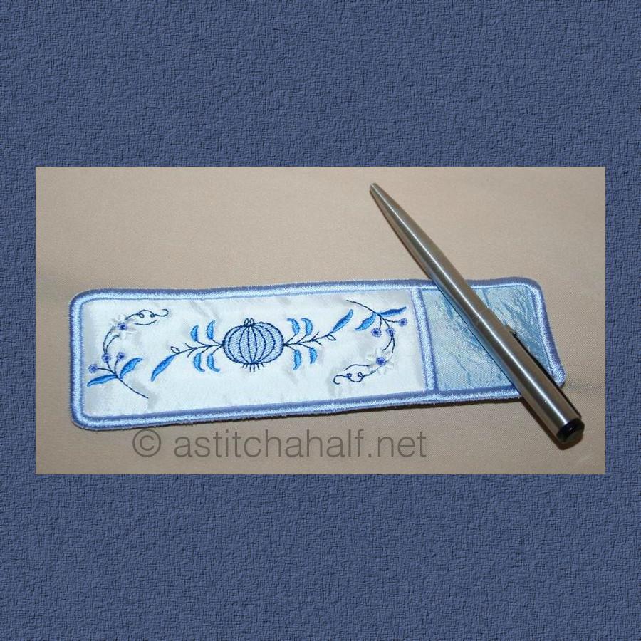 A pen and pencil sleeve made completely in the hoop. You can use the sleeve for your reading glasses too or even for some of your cosmetics.
