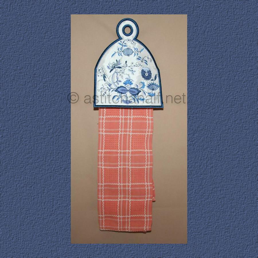 Hang your Towels on this bright and colorful Blue Onion Towel Topper. An easy all-in-the-hoop project to complete in a jiffy. Match the flowers to your own color scheme and it will compliment any room.