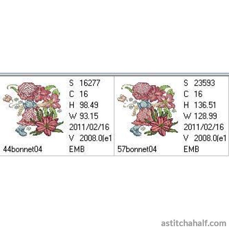 Bonnet Barbara enjoys her walk through the garden with lilies and beautiful flowers in her pretty lace dress.