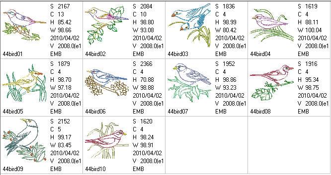 Allow these beautiful variety of birds to decorate your linen, pillow cases, table cloth, clothing and so much more. These outline designs will stitch out in a very short period of time and take very little thread.