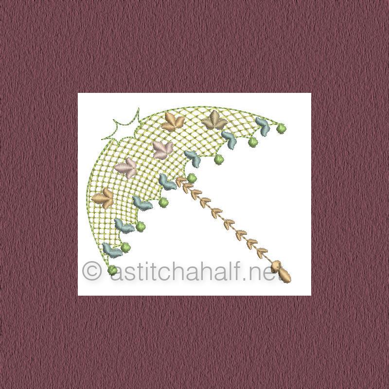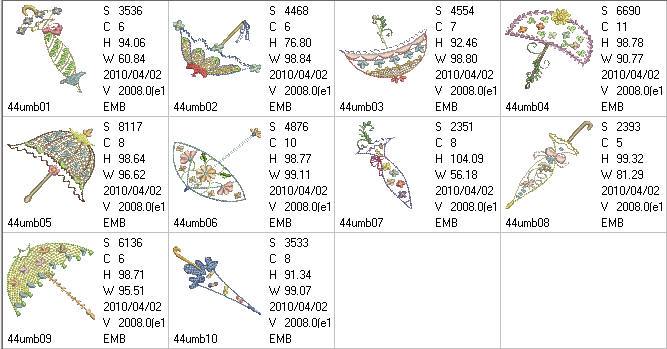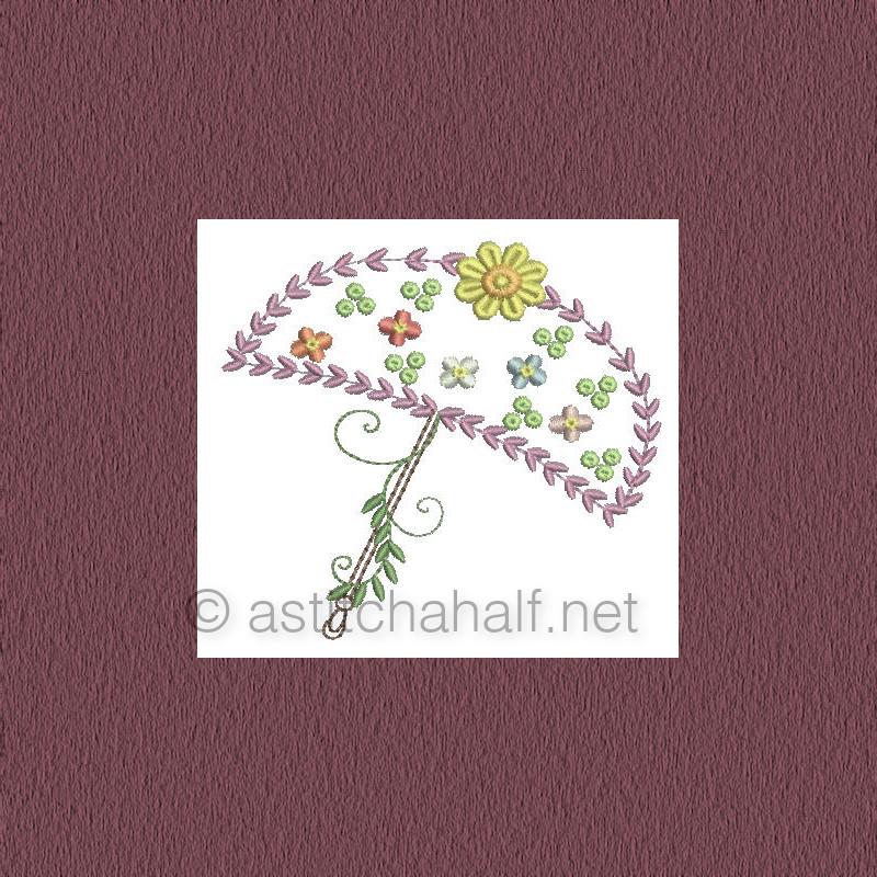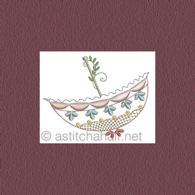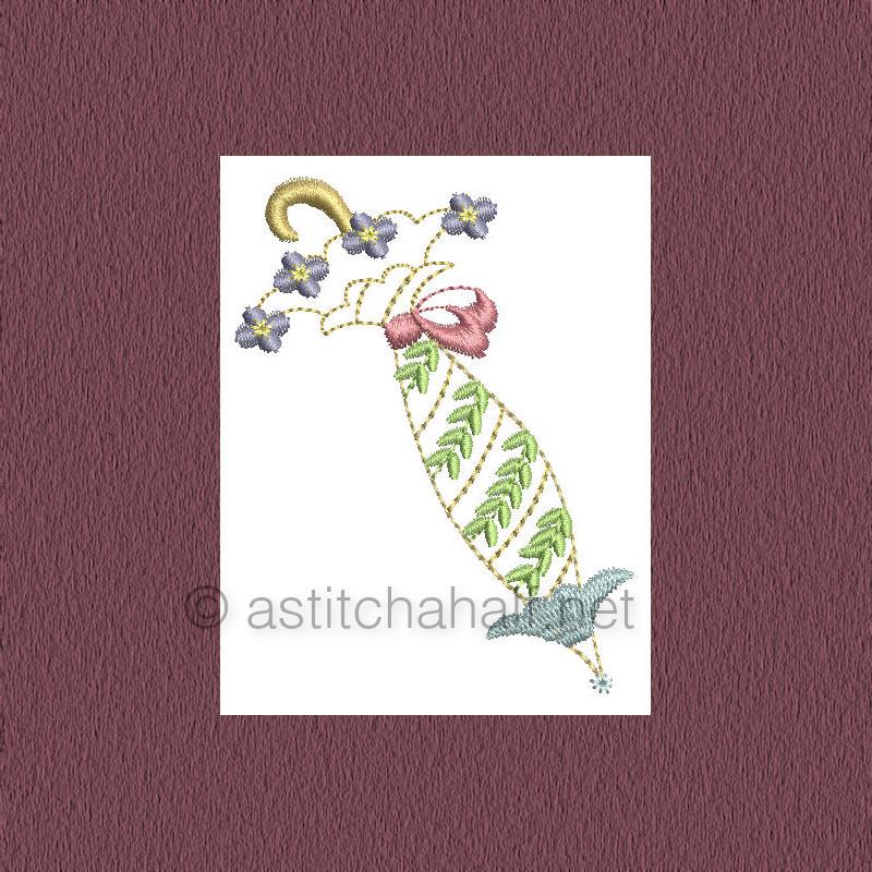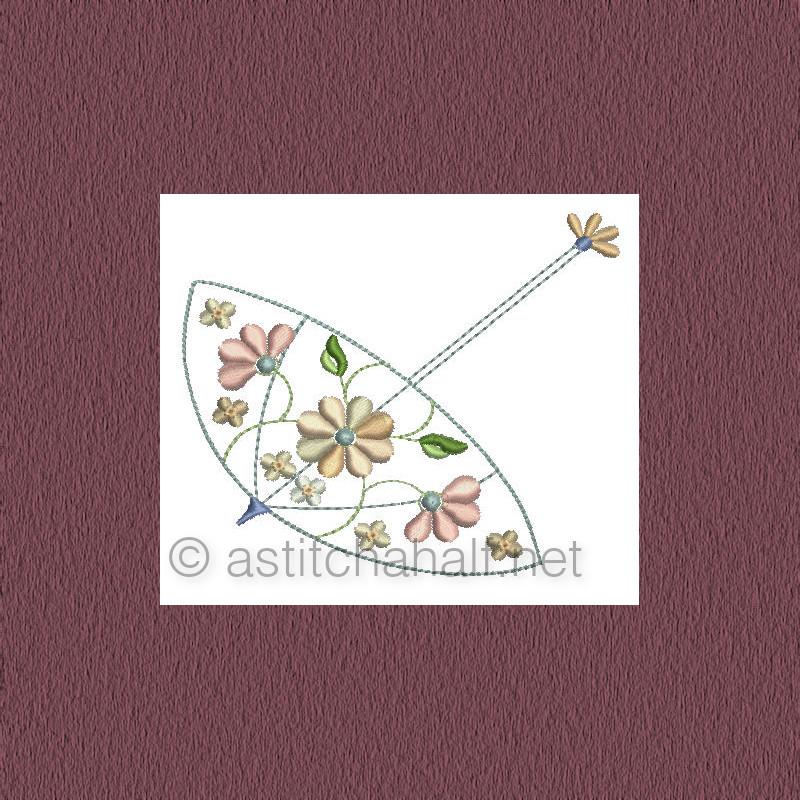 Allow these beautiful variety of umbrellas and flowers to decorate your linen, pillow cases, table cloth, clothing and so much more. These outline designs will stitch out in a very short period of time and take very little thread.