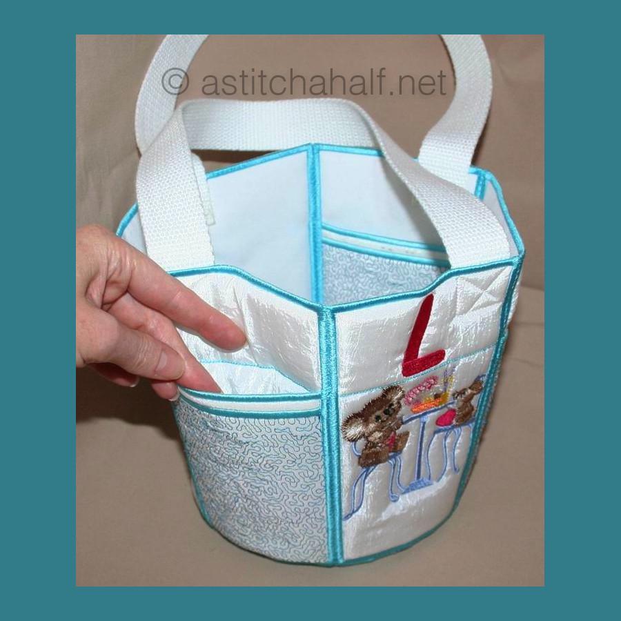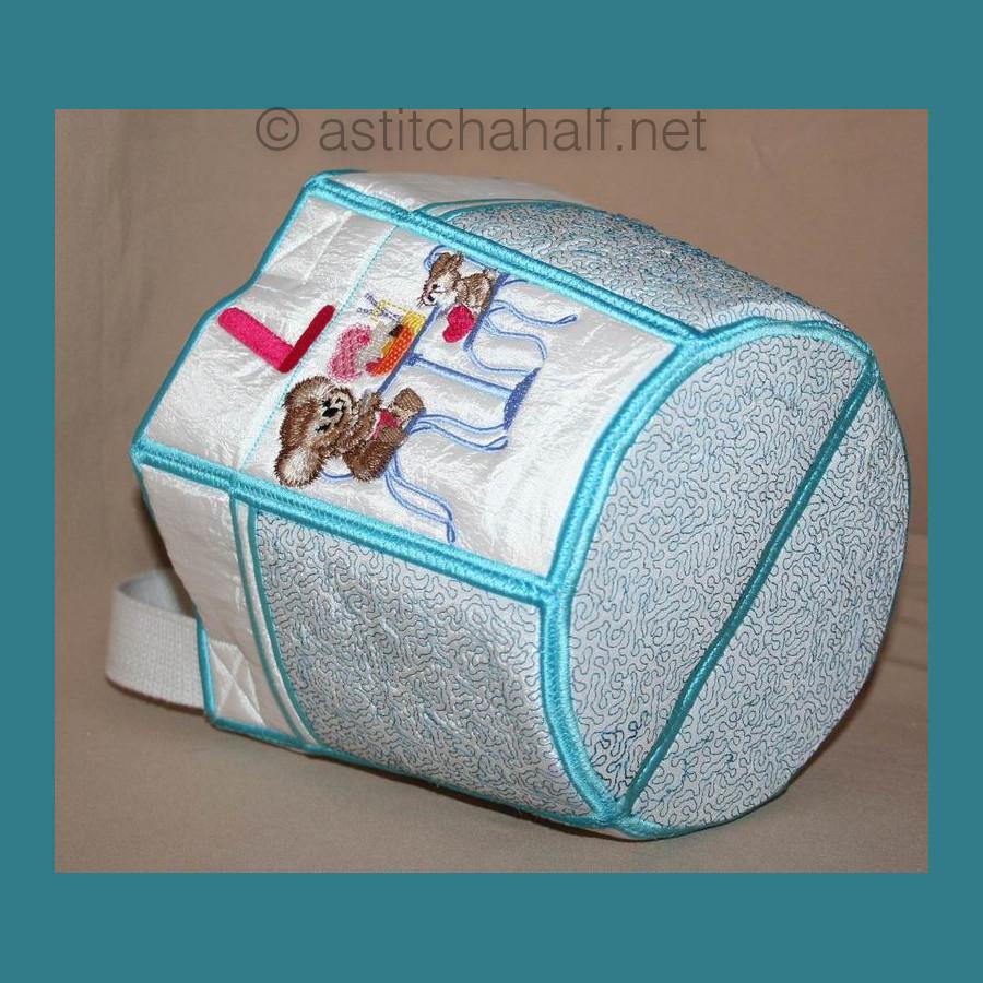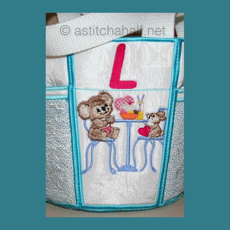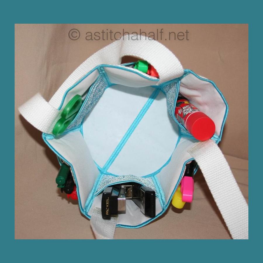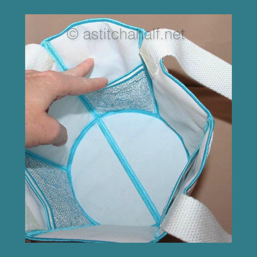 You receive designs to complete the Tote bag in 5*7, 6*8 and 6*10 hoops