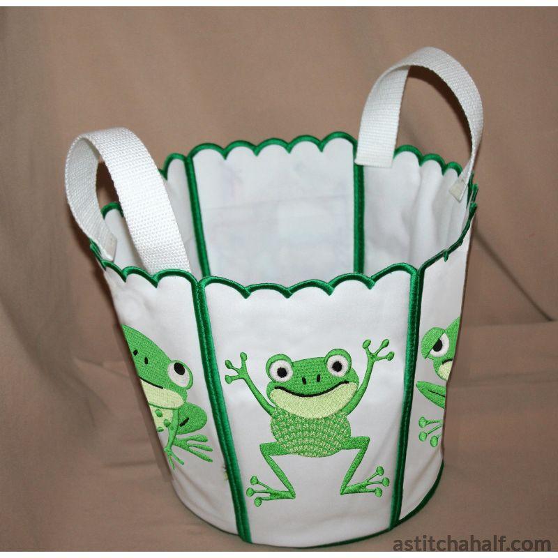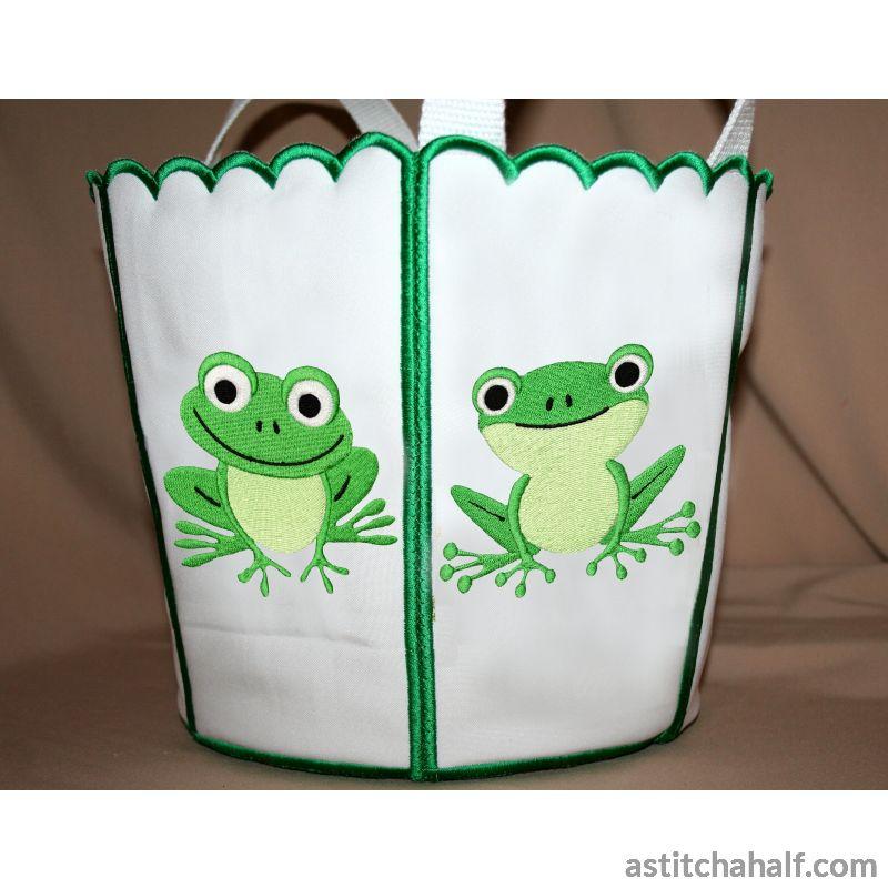 Stitch a Bucket Toad decorated with cute little Frogs and Toads. A practical yet easy project!