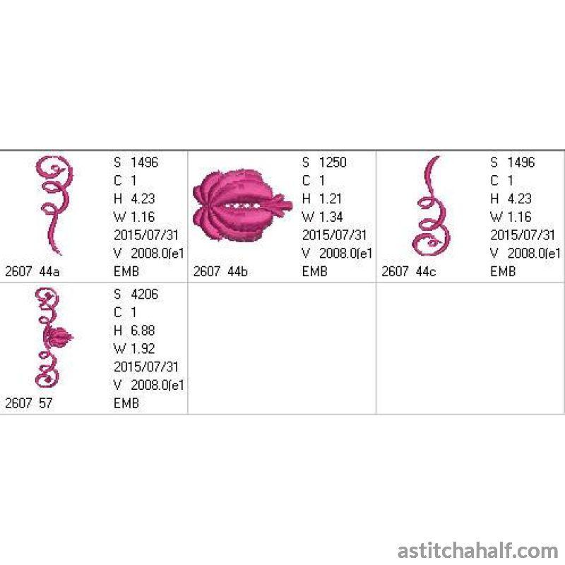 Use this timeless Budding Border to create a beautiful, timeless project on dish cloths, towels, napkins etc.