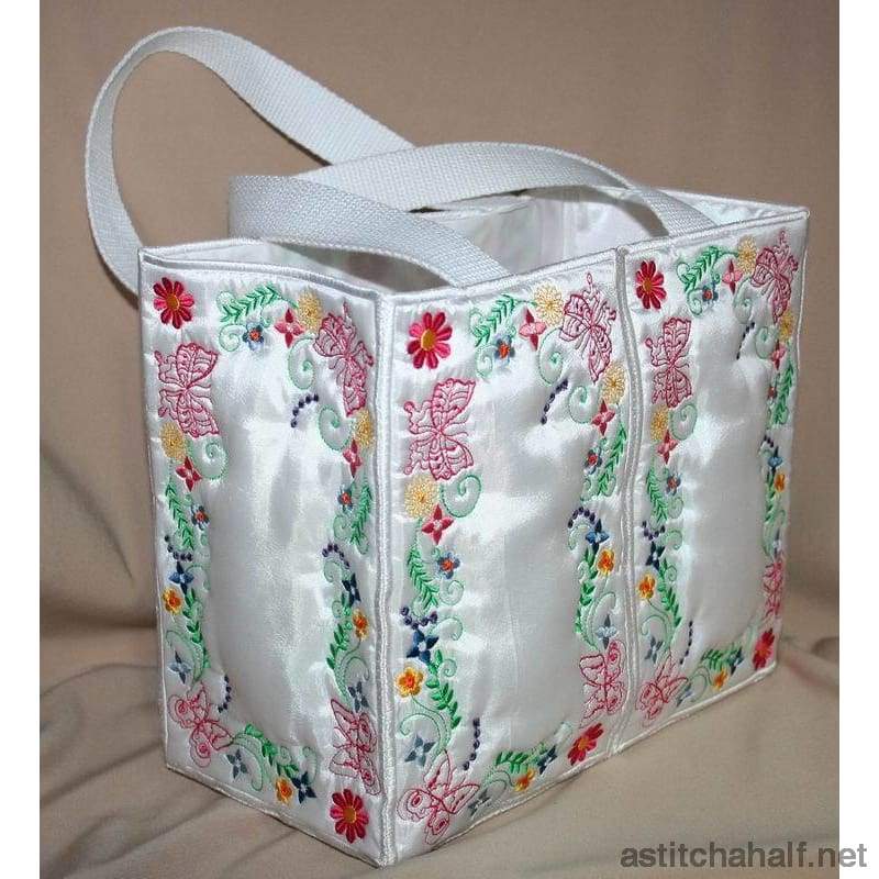 A Tote Bag for all occasions. Tiny butterflies and an array of beautiful flowers adorn this tote to make it special.