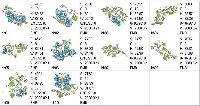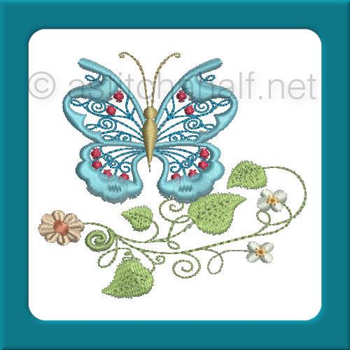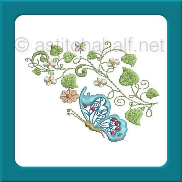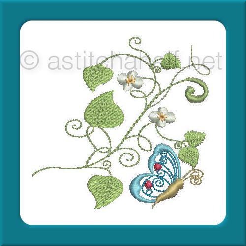 Stitch out these delightful butterflies and foliage to create a beautiful edging on your linen, hemline, cuffs and collars.