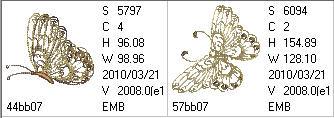 You receive 2 unique butterflies. Collect all 20 designs (in Butterfly Boutique 01 - 10) to mix and match or create a beautiful quilt etc...