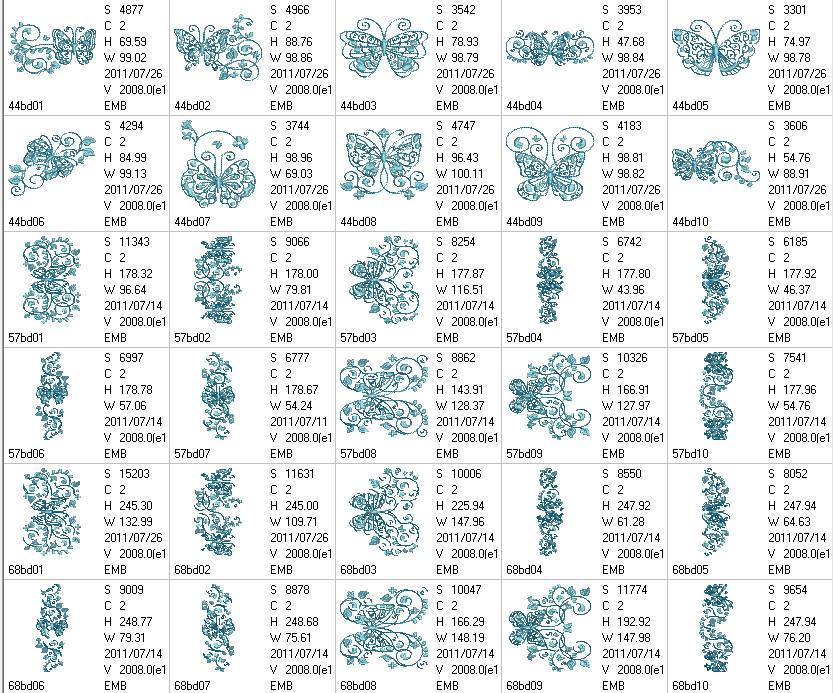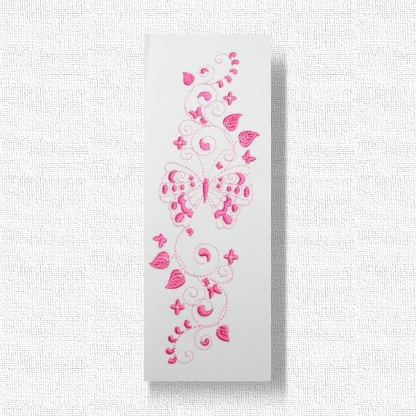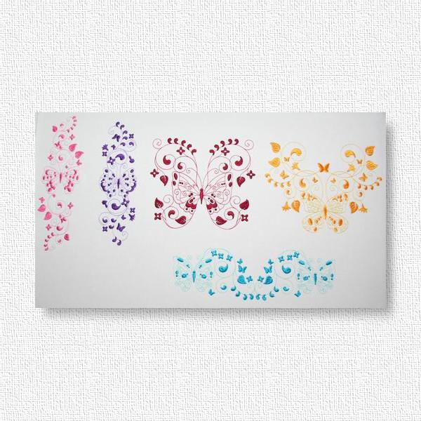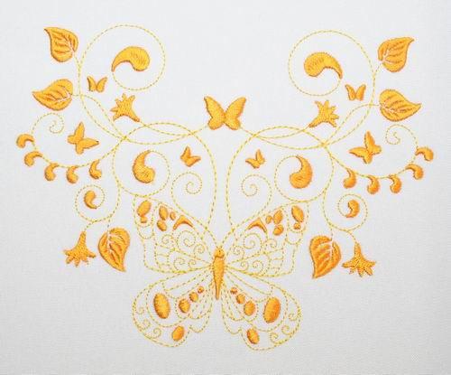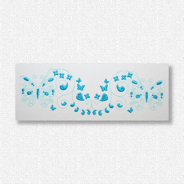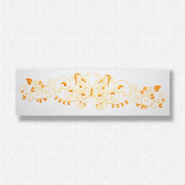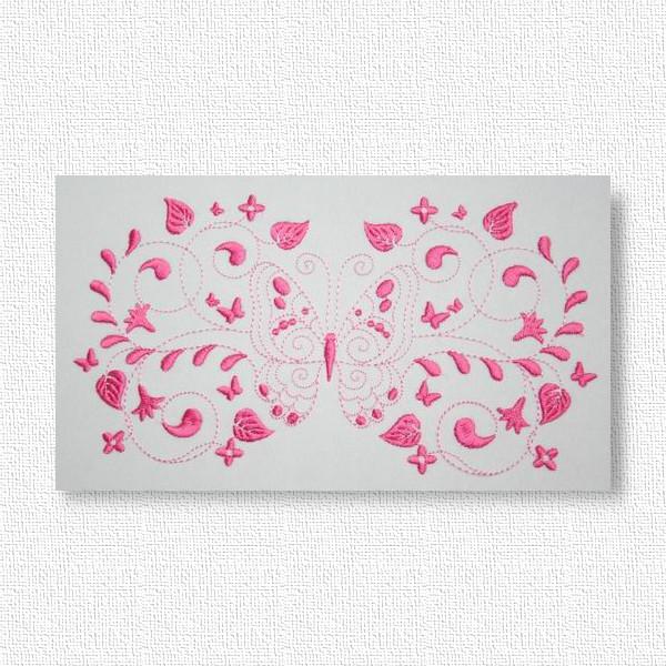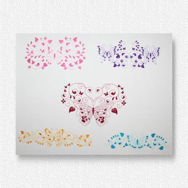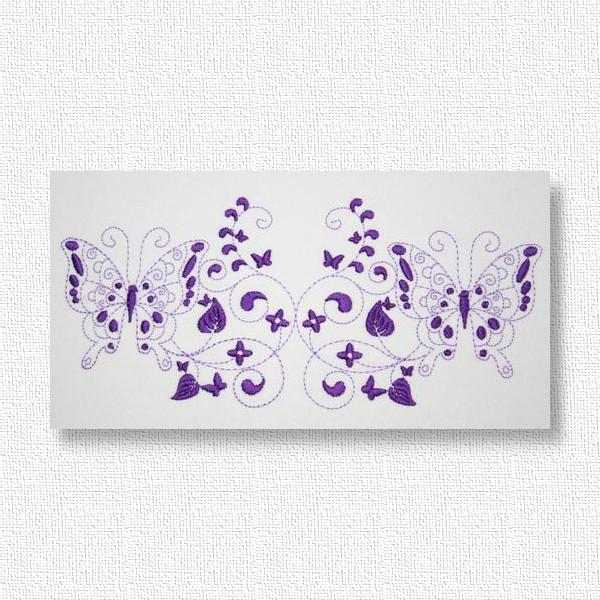 Embroider these 2-tone butterflies to create a quick and easy yet exquisite looking gift like edging along a table cloth, napkin, skirt border or blouse pocket. Use your favorite Spring, Summer, Fall or Winter colors to bring the garden into your home with these colorful happy butterflies.