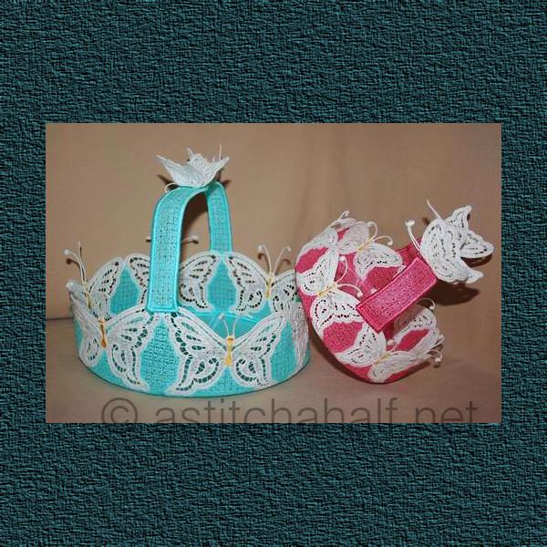 Butterfly Dreams Lace Baskets in two sizes. Use these dainty baskets for treats at any festive occasion. Just imagine adding flowers, napkins and more to decorate your table. And use the Butterflies on their own as well.