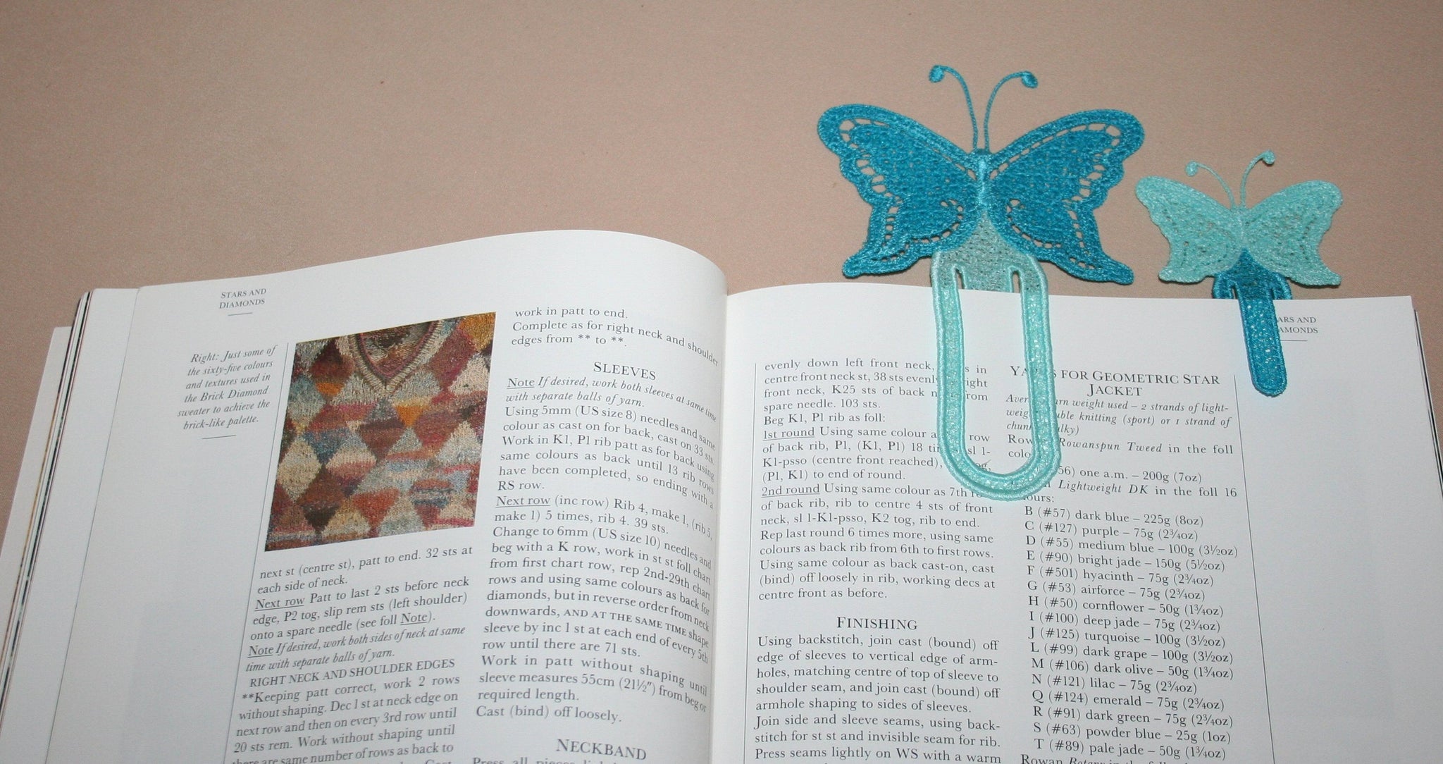 See the project we made for a Friend`s wedding with this bookmark - We stitched out 55 in total with their initials in silver thread on each wing. (click on CUSTOMER PROJECTS top of webpage)
