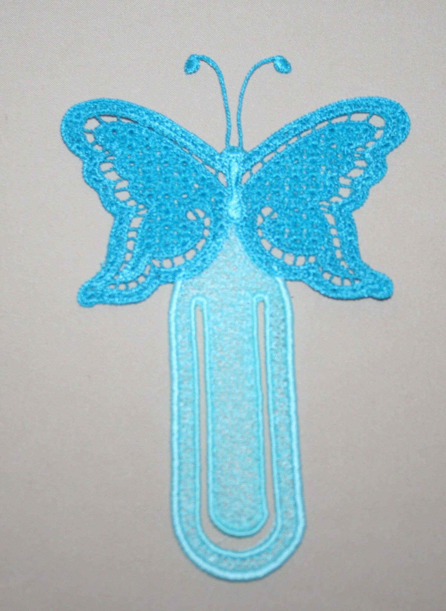 A quick and easy embroidered bookmark with our ever popular butterfly. Simply choose 2 thread colors and stitch out on water-soluble stabilizer...so simple!