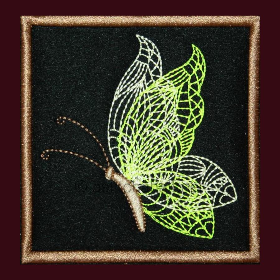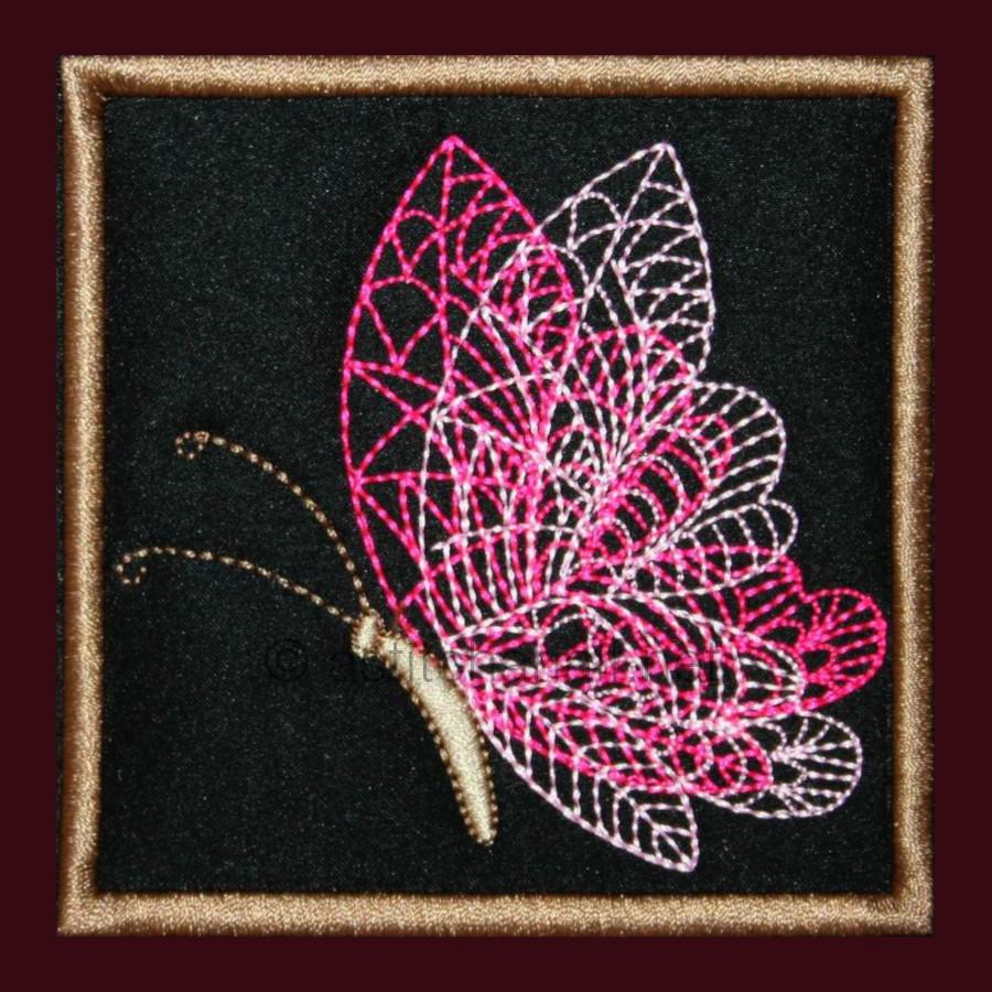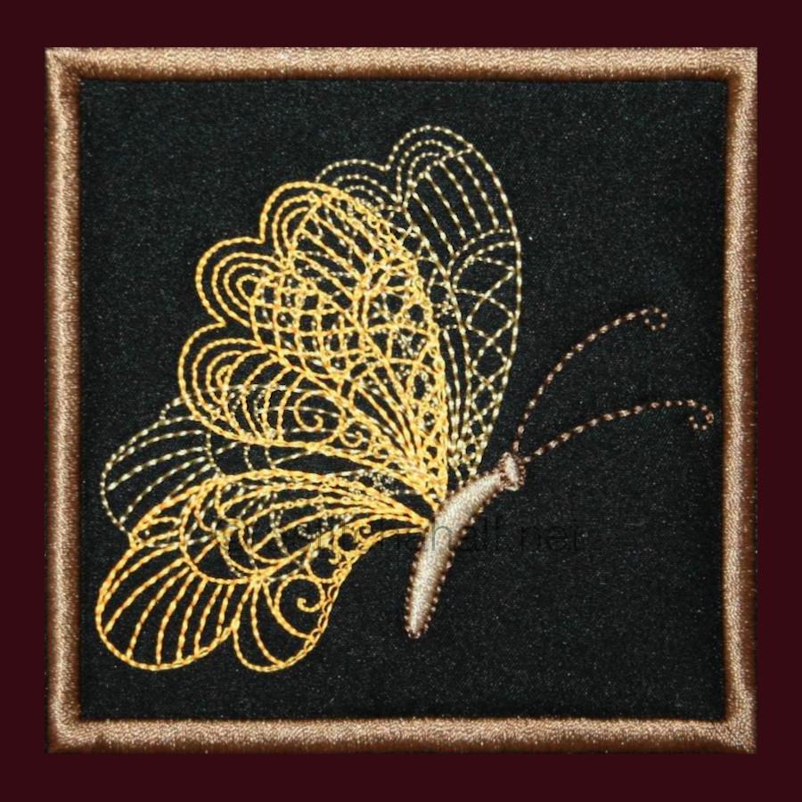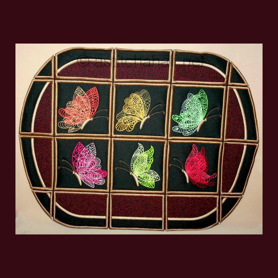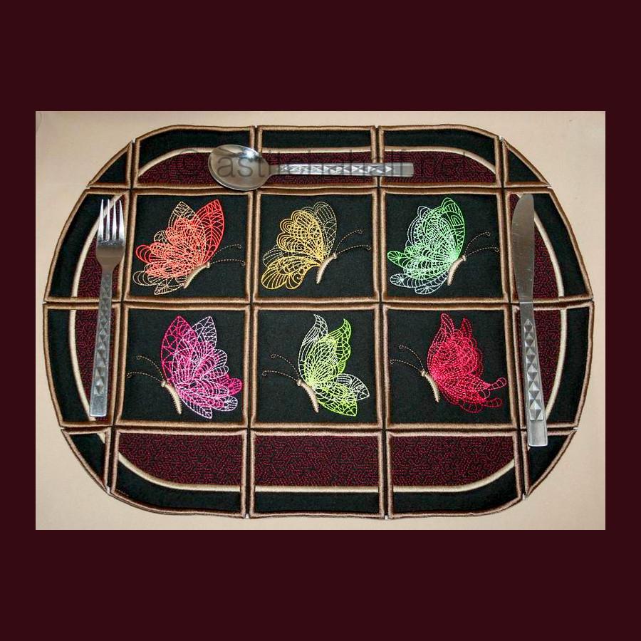 How to make beautiful, colorful placemats in the 4*4 hoop. Just think how lovely these butterflies will look on your table. Make 6 of them and you have a full set of table mats.