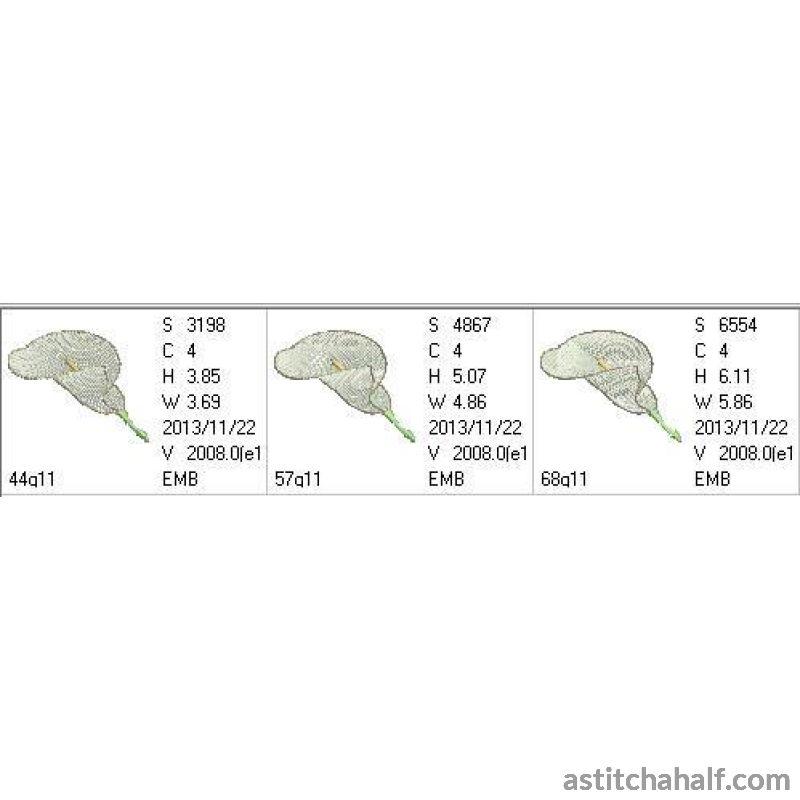 Light and transparent flowers created with a just a few flowing stitches. Create a sheer look by stitching these flowers in the color chart provided or embroider in tone on tone to match your fabric. The low stitch count make this perfect to embellish a large number of garments.