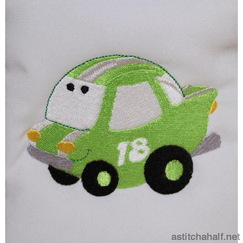 A Cars Back Pack for Babies can be complete in 2 unique sizes. Medium Size = 5*7 Hoop and Large Size = 6*10 Hoop