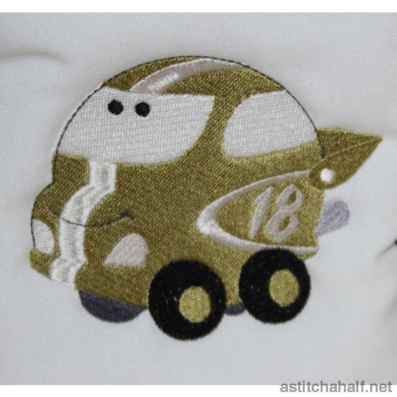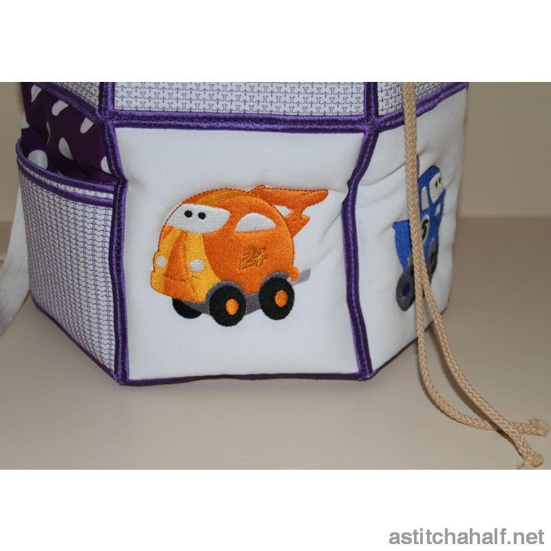A Cars Back Pack for Boys can be complete in 2 unique sizes. Medium Size = 5*7 Hoop and Large Size = 6*10 Hoop