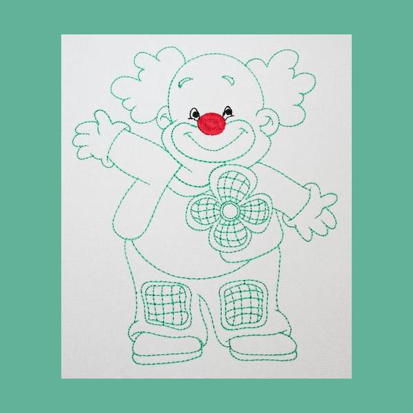 Invite Casey the Clown to your home and heart. This cute embroidery design will surely find a place to brighten up. With a low stitch count this delightfully fun design can easily be added to a bib, T-shirt or any fabric that needs brightening up.