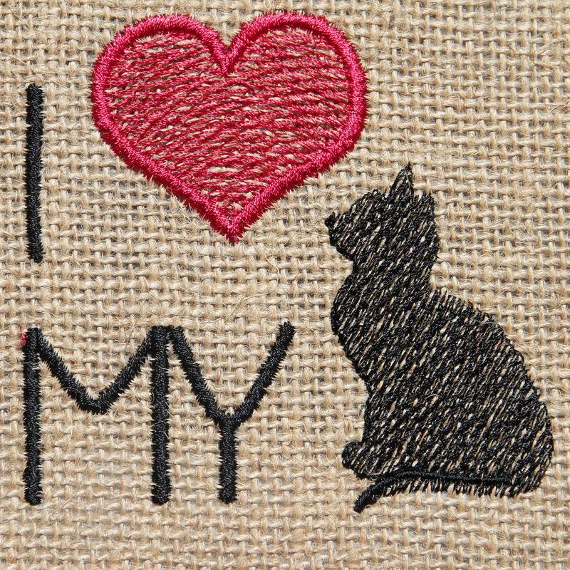 Your pet is always there for you. Now you can create a project that includes your pet. Personalize your Kitty blanket, Kitty towel, Kitty winter jacket or stitch the "I love..." design on your favorite T-shirt, tote bag etc. Send us a picture of what you did with your pet designs.