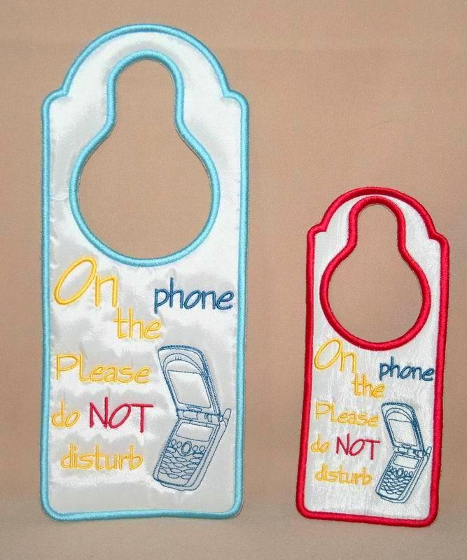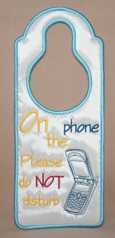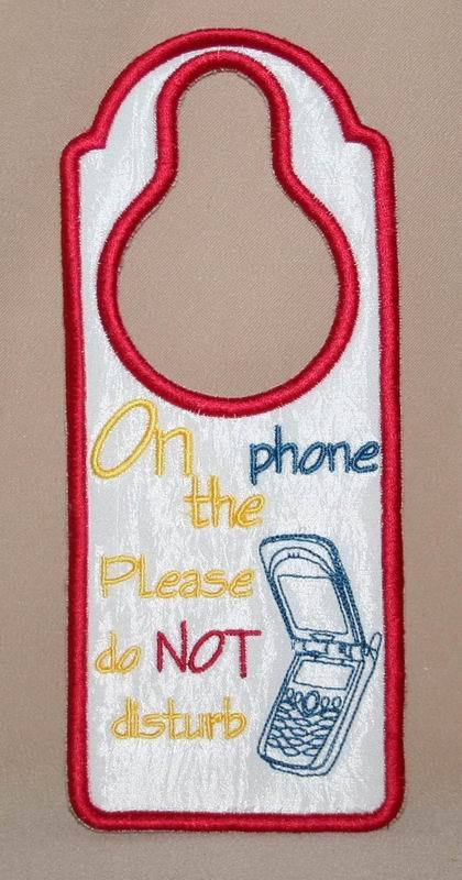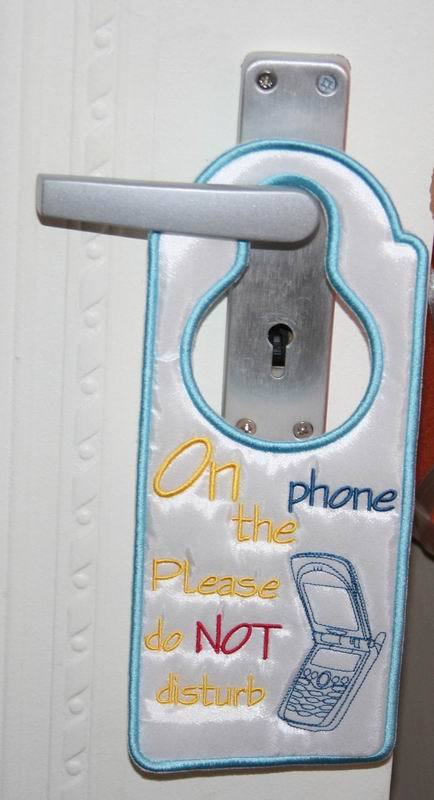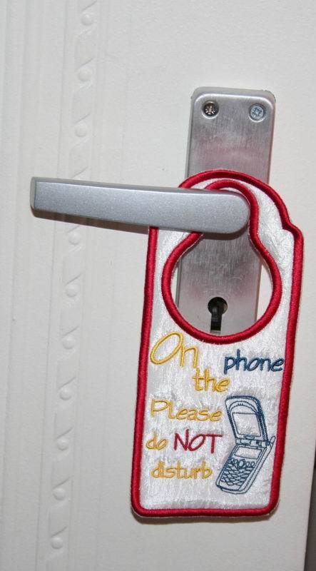 An "all in the hoop" door hanger ensuring your conversation is uninterrupted.