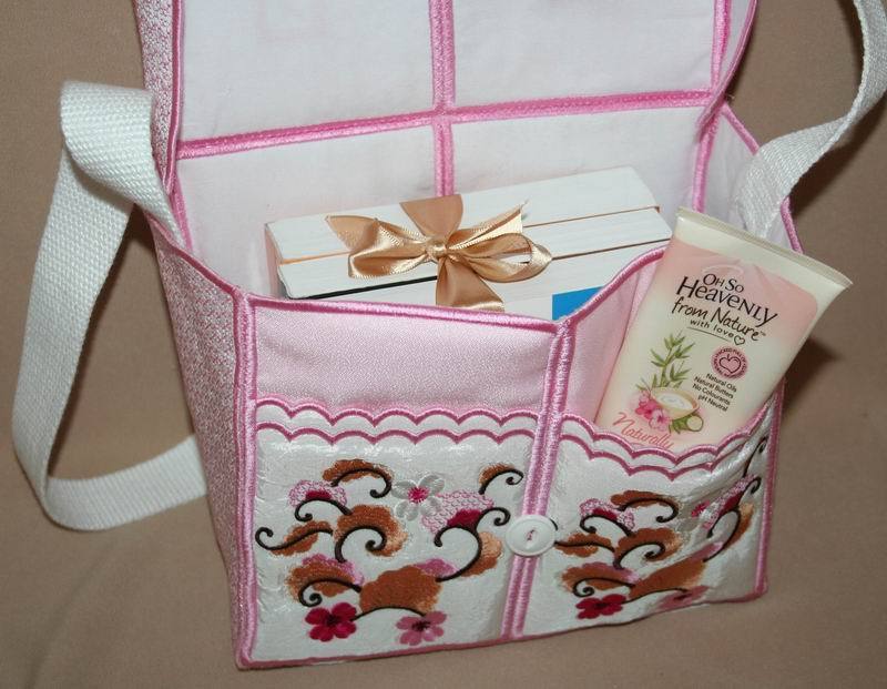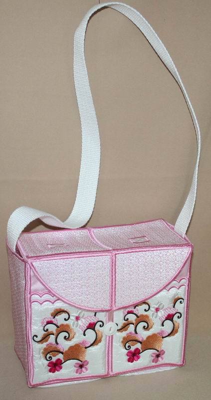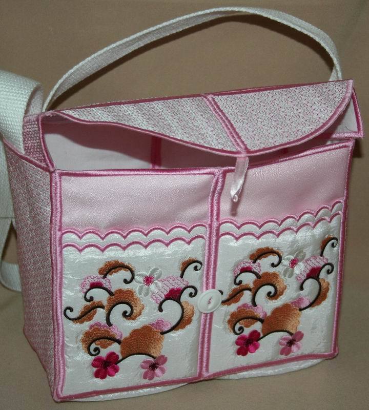 The Cherry Blossom Tote Bag is for young and old. Change your fabric and Thread color to create a fresh new look. Use it as a baby bag, when you travel or when you simply need a bag with lots of packing space.
