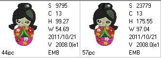 The Kokeshi dolls are traditionally hand crafted and painted wooden dolls originating as far back as possibly 1600 - 1868. Make a colorful Quilted blanket or decorate a bag or embroider on a pocket.