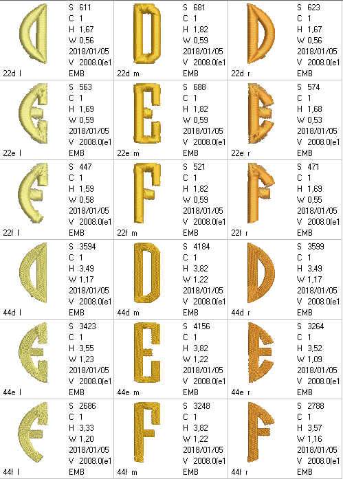 * Letter D (Left, Middle and Right) = 3 large (3.8") and 3 small (1.80")