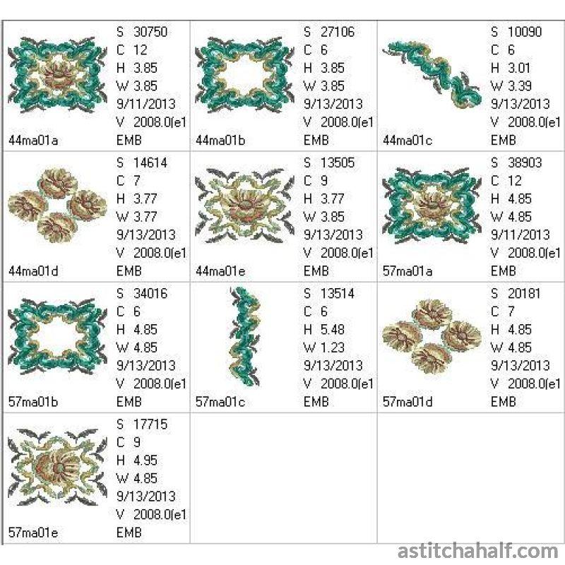 Classic Rosemaling is a selection of block, border and floral designs to decorate a table runner with matching napkins and placemats