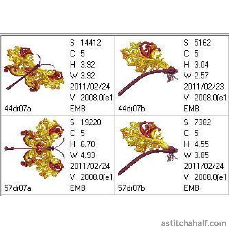 - 2 Unique Dragonfly Designs - (1 front view and 1 side view) for the 4*4 hoop