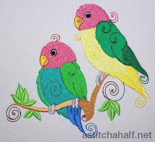 Courting Love Birds look "in love". Add them to an apron, T-shirt or any garment to give them a new look.