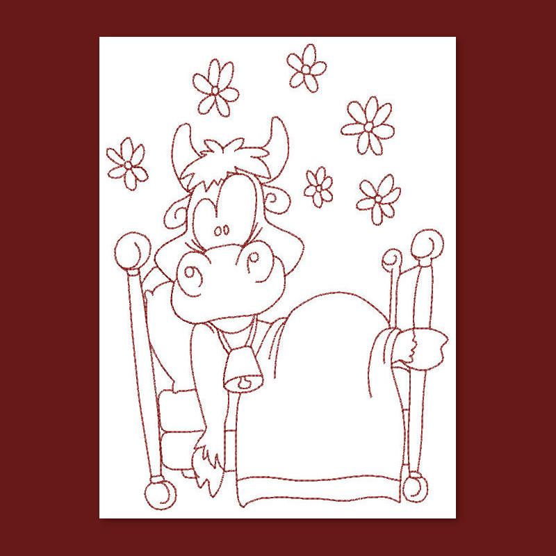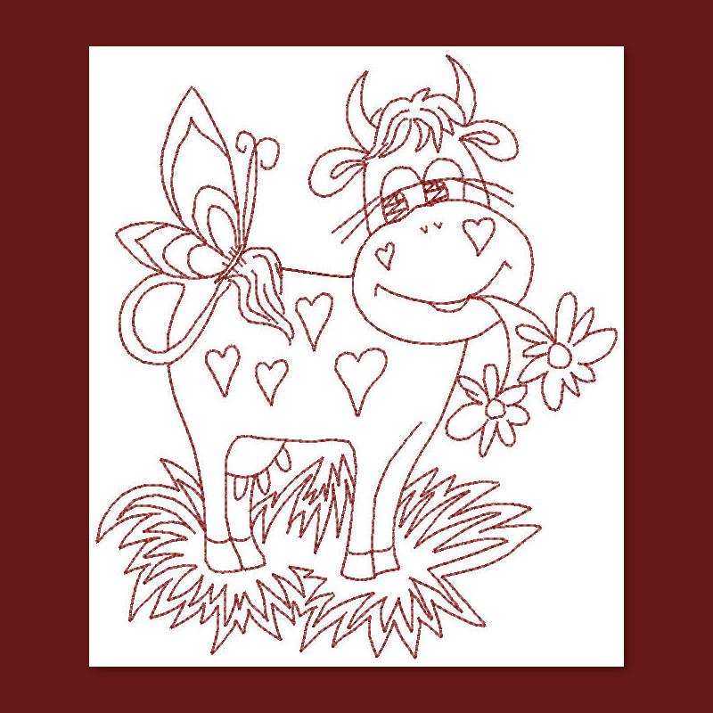 Come and visit our crazy cows doing "crazy" stuff. The main stitch used in redwork is back stitch or outline stitching. It is also called "quick stitch" because you can create a simple redwork embroidery design in very little time. You can make tea tray cloths, pot holders, book covers, coasters, placemats and so much more.