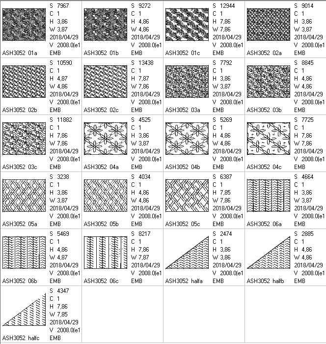 4*4 hoop designs x 7 (stitch count = 2474 - 9014)