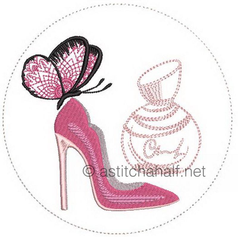 3 x Zipper Bags with Shoe, Butterfly and flower and 3 x Zipper Bags with Shoe, Butterfly and Perfume Bottle.