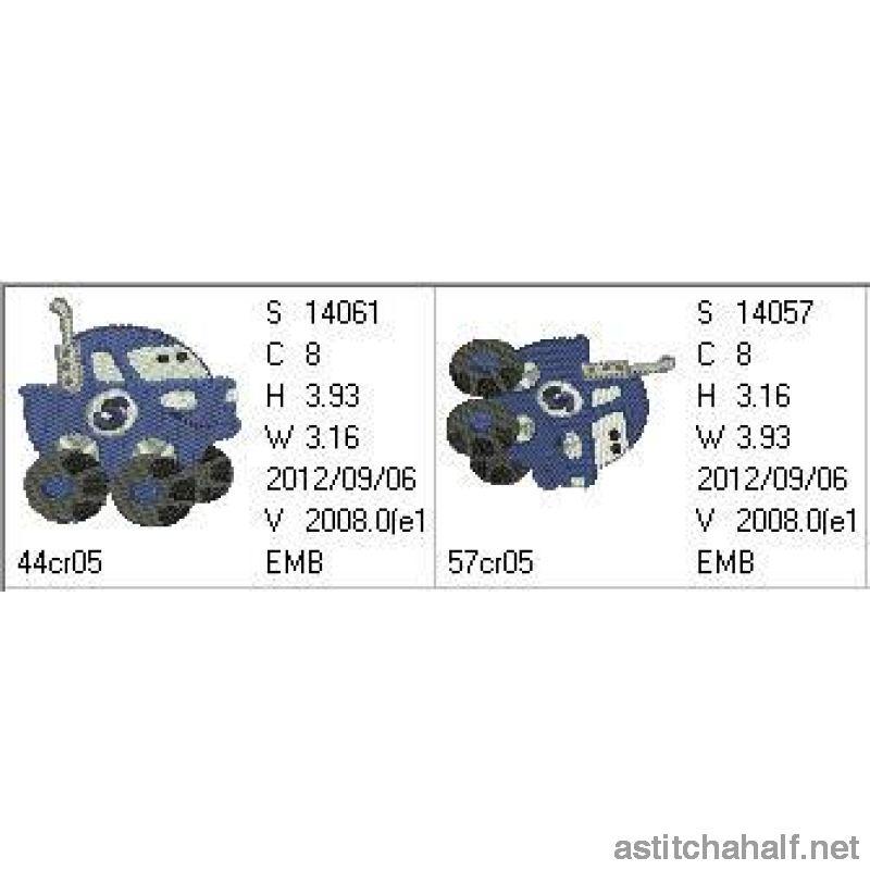 Cruiser Car is available in 2 x hoop sizes (4*4 and 5*7). Embroider this design on clothing, a bag or collect all the car friends for a cars theme bedroom.