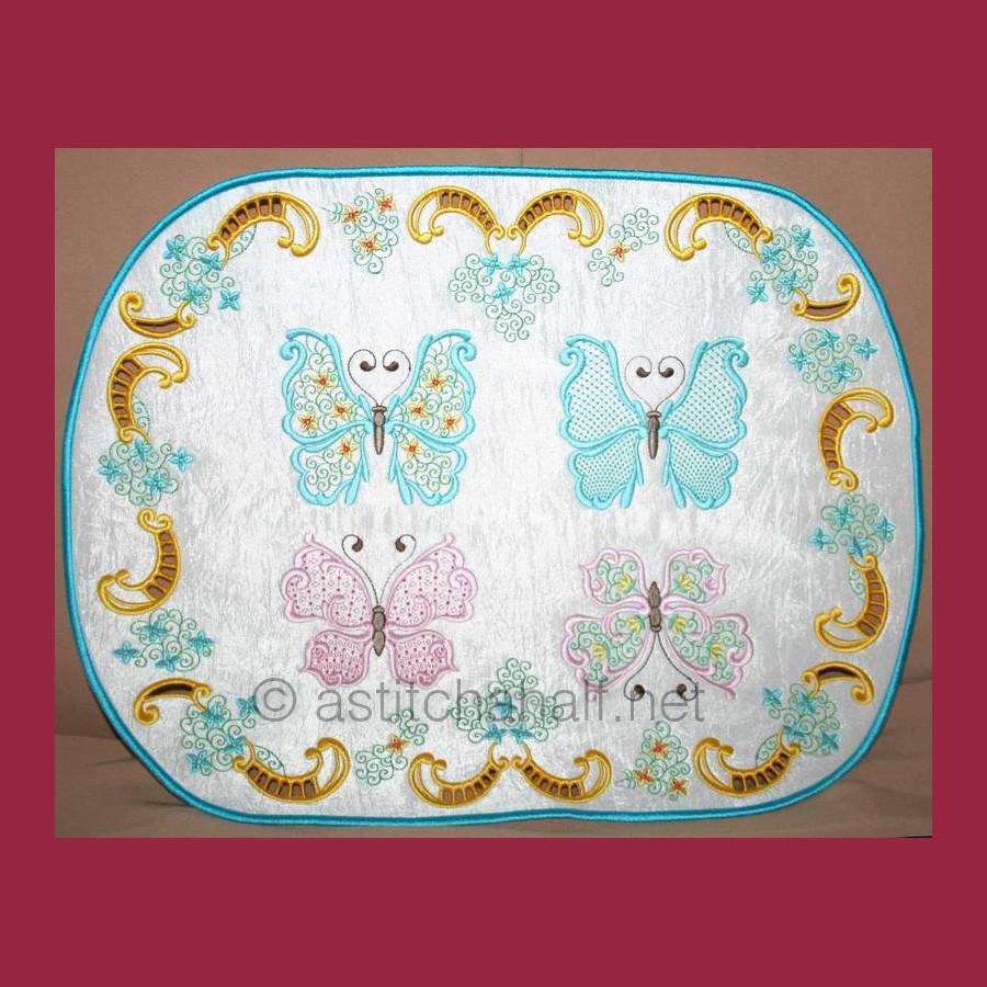 Please note that the place mat is an example of how we used the cutwork designs. The butterfly designs are NOT included in this set.